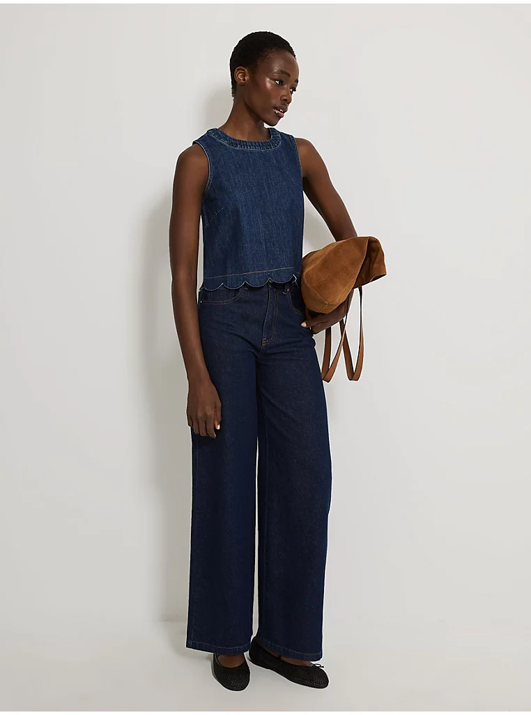 Dark Wash Scallop Edge Sleeveless Denim Top